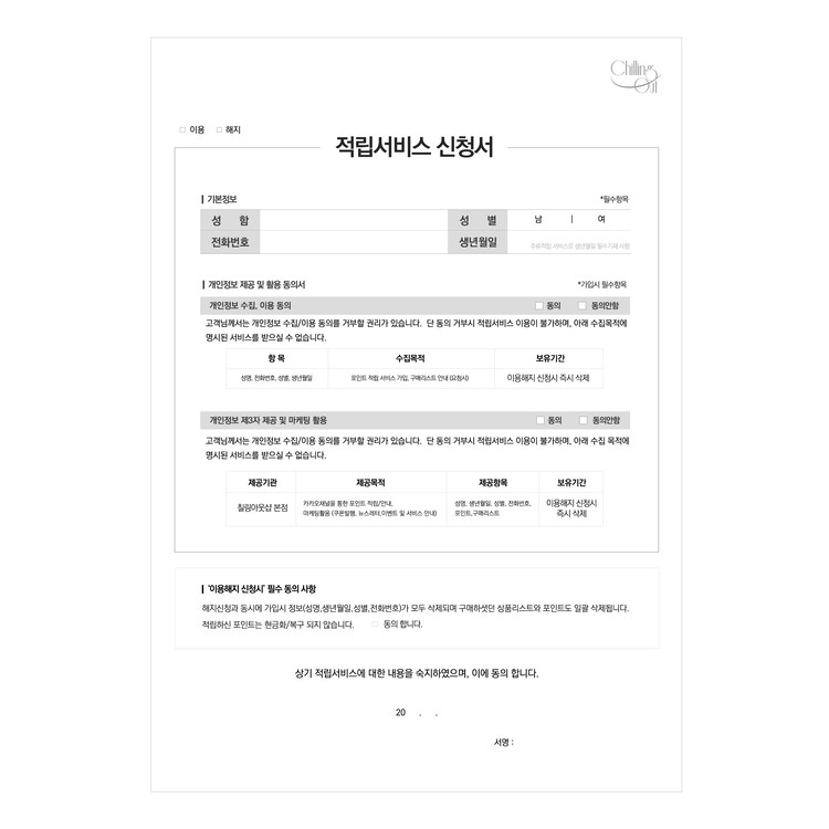 적립서비스 신청서