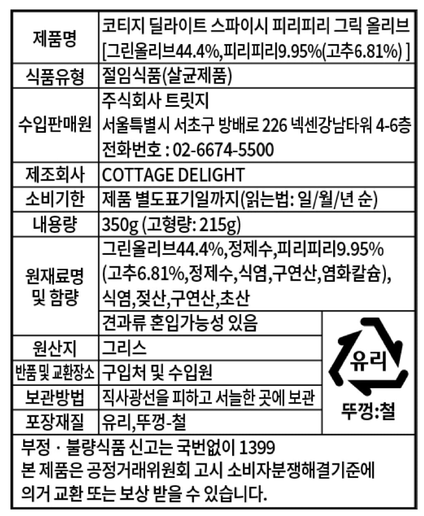 스파이시 피리피리 그릭 올리브 절임 350g